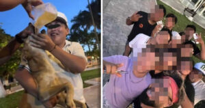 Jóvenes de Dzidzantún someten a perro callejero a cruel consumo de alcohol