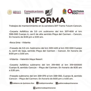 Inician reparaciones en la carretera Cancún-Playa del Carmen