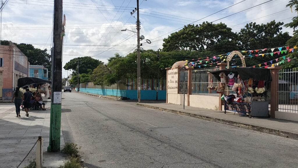 Las inmediaciones del santuario lucen vacías, y solo se observan algunos puestos de vendedores ambulantes ofreciendo la tradicional vestimenta para los niños con imágenes de la Virgen de Guadalupe y algunos otros objetos alusivos a esta celebración.