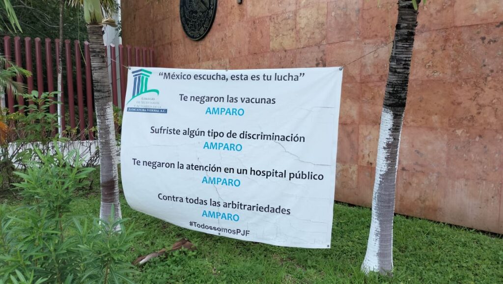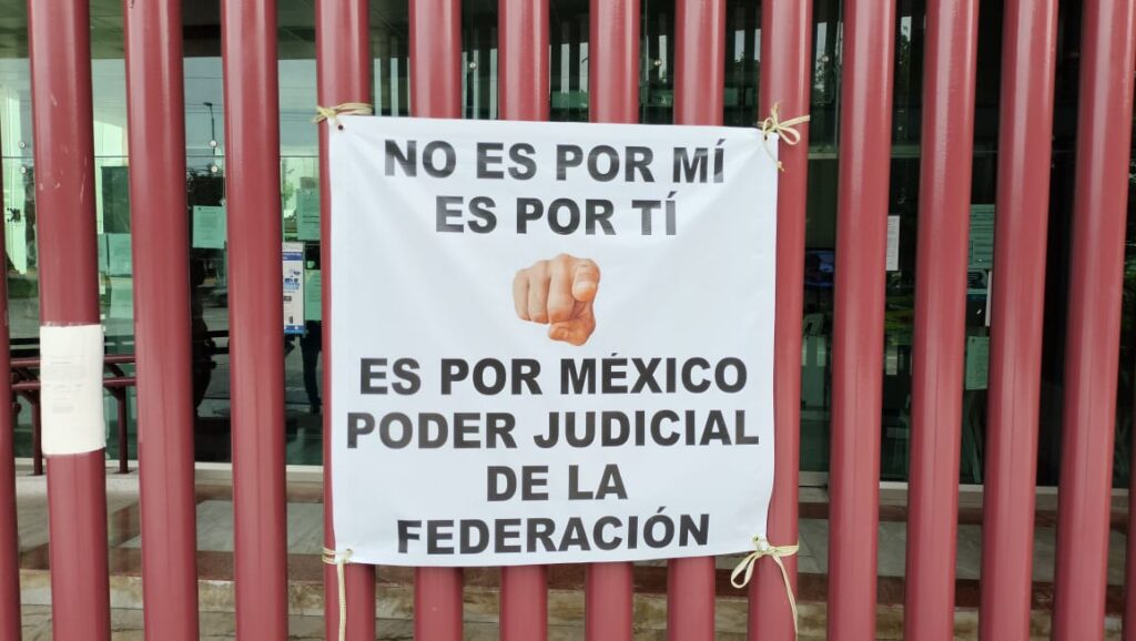 Los inconformes mantienen mantas afuera de las instalaciones donde se puede leer “La justicia está bajo ataque”, “No es por mí, es por ti es por México”, “Venimos con todo, menos con miedo”, entre otras .