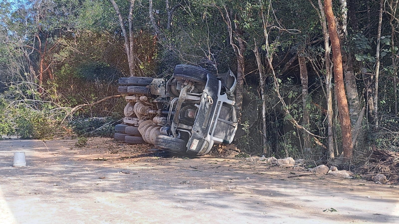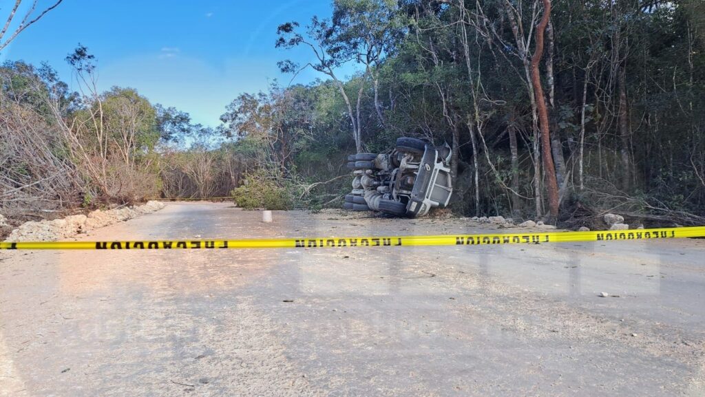 Felipe Carrillo Puerto.- El conductor de un volquete perdió la vida, al volcar su vehículo y quedar prensado, la tarde de hoy viernes en la obra de la “Puerta del Mar”, o camino de acceso a la costa de Felipe Carrillo Puerto.