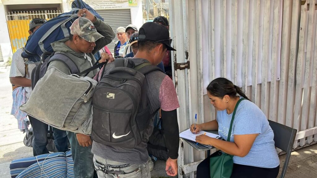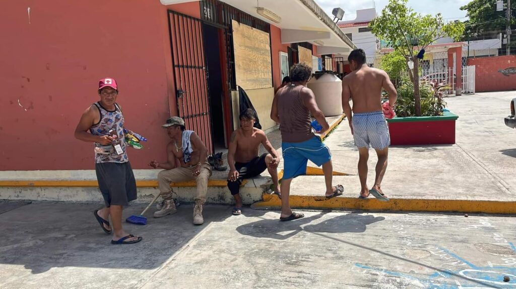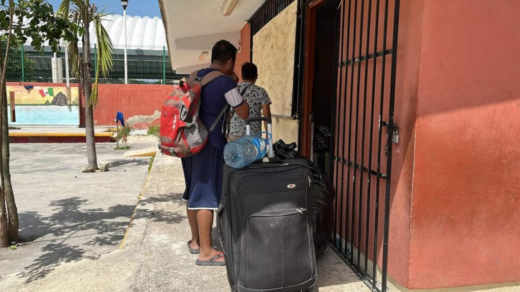En la escuela primaria “Octavio Solís Aguirre”, los obreros hicieron fila para ser registrados en este plante educativo habilitado como refugio, donde pasarán la noche en espera del paso del huracán “Beryl”, portando consigo sus pertenencias y algunas colchonetas.