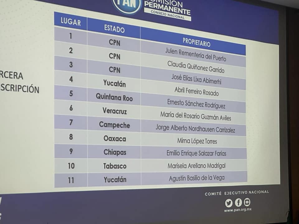 El Partido Acción Nacional (PAN) definió anoche, 24 de enero, las listas de candidatos a Diputados Federales Plurinominales para las cinco Circunscripciones del país. Entre los elegidos por la Comisión Permanente del PAN, destaca el caso de Ernesto Sánchez Rodríguez, quien ocupa el quinto lugar por la Tercera Circunscripción, a la que pertenece Quintana Roo.