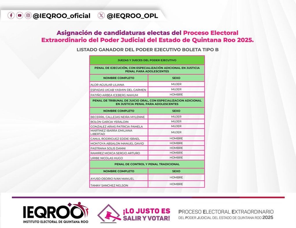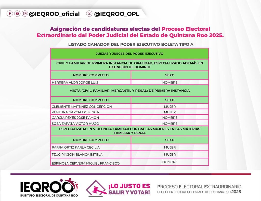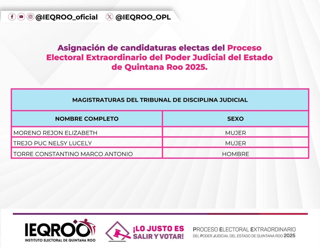 IEQROO ha validado y asignado los cargos de las elecciones para el Proceso Electoral Extraordinario del Poder Judicial del Estado de Quintana Roo