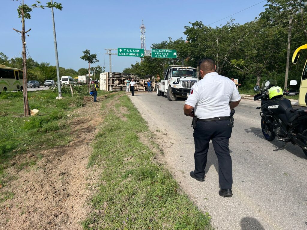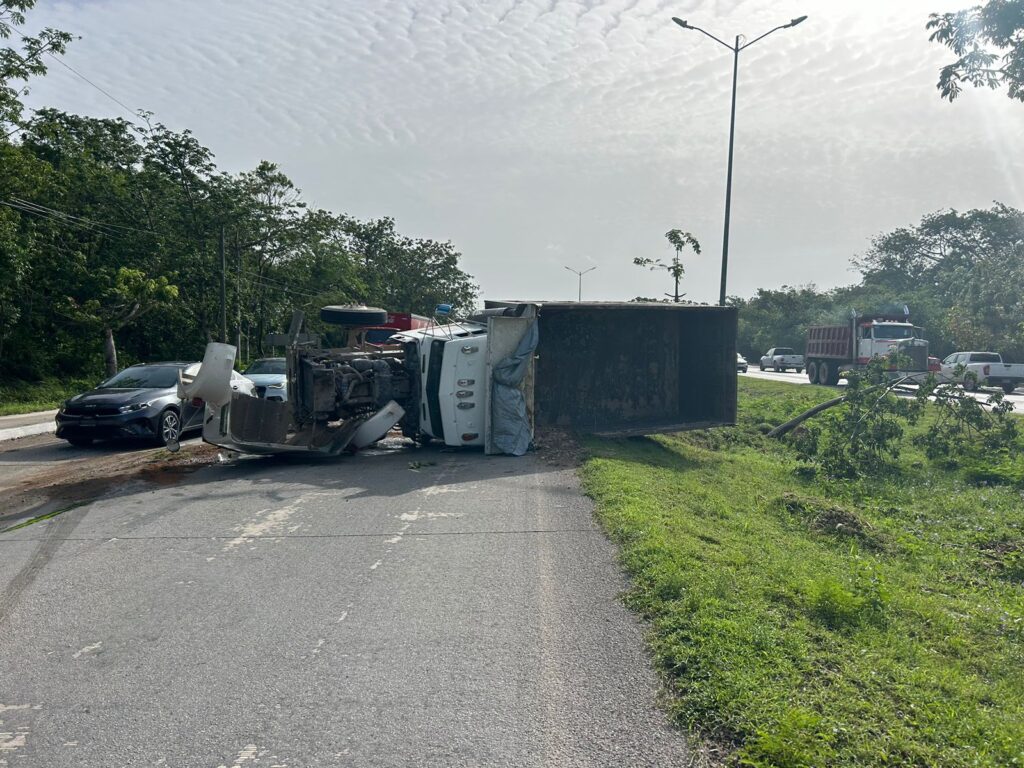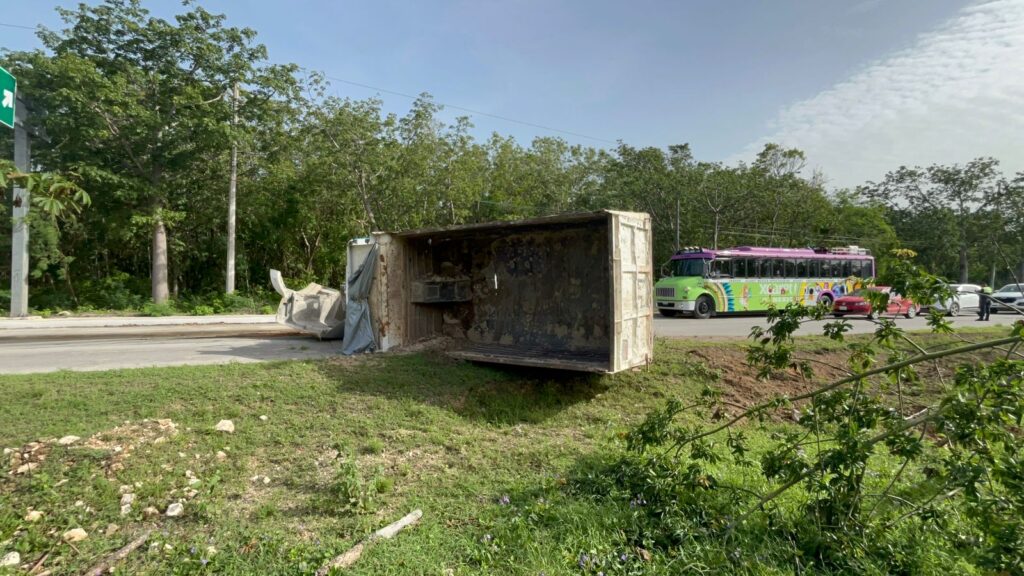 Este volquete avanzaba al sur, en el tramo Playa del Carmen-Tulum, al parecer a exceso de velocidad, lo que hizo que se saliera de control, al pretender el chofer frenar.